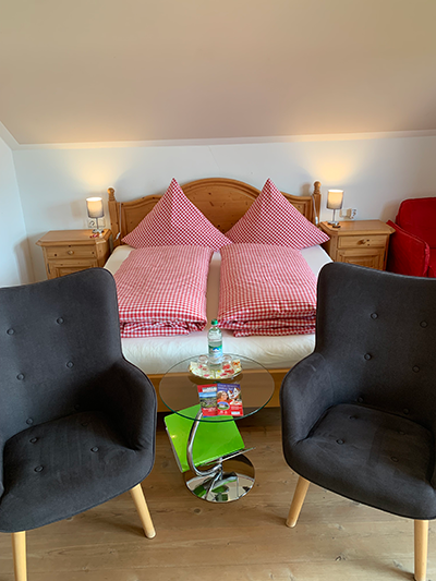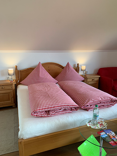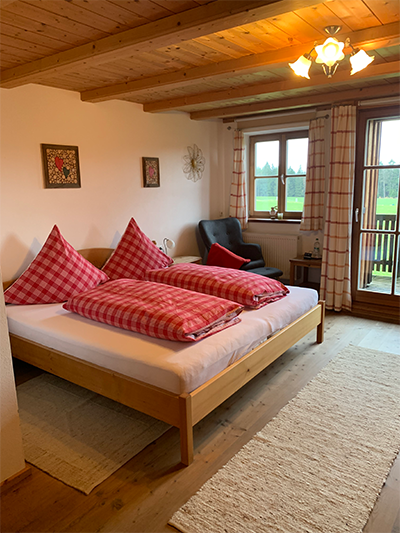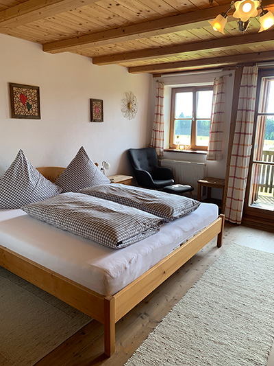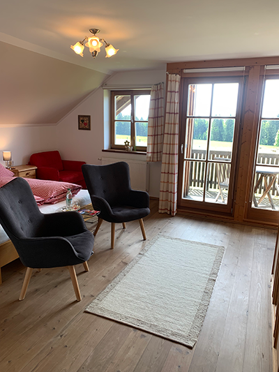 Ankommen, durchatmen und den Blick schweifen lassen: Unsere Doppelzimmer „Naturblick“ I & II bieten Ihnen gemütlichen 4-Sterne-Komfort mit Dusche/WC, TV, Teebar, Kühlschrank und kostenlosem WLAN. Der sonnige Balkon eröffnet Ihnen einen traumhaften Blick auf die umliegende Natur und die Berge – perfekt für entspannte Stunden.